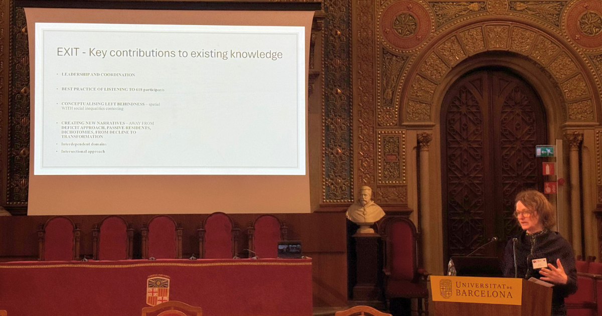 The findings were presented on 13 February 2026 at the European conference “Left-behindness contested: Place, power and pathways to change” hosted by the University of Barcelona in cooperation with the EXIT consortium, bringing together leading academics, policymakers, and civil society representatives from across the world.